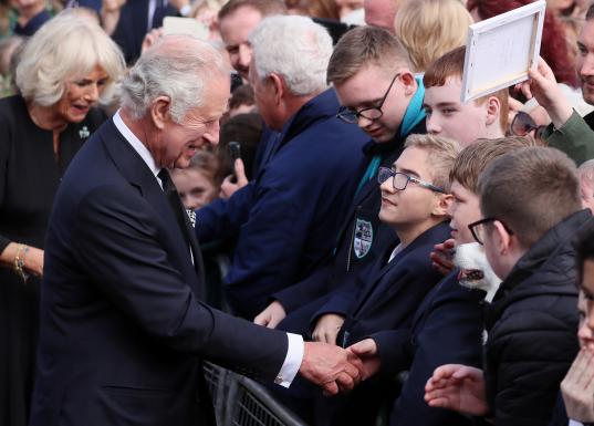 The King and Consort arrived at Hillsborough Castle, where they meet with the public and viewed floral tributes left for Queen Elizabeth II before His Majesty held a private audience with the Secretary of State for Northern Ireland and meet with representatives from political parties.